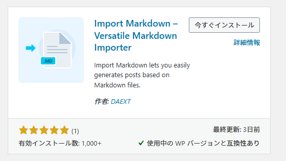 脆弱性の報告が無かったので今回「Import Markdown」をご紹介しましたが、大量に記事がある場合は一件ずつというのがネックになるかもしれません。