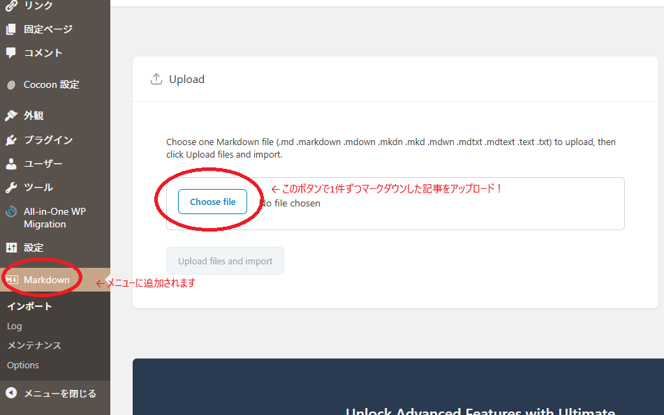 プラグイン 「Import Markdown」を追加します。日本語未対応ですが直感で操作できます。